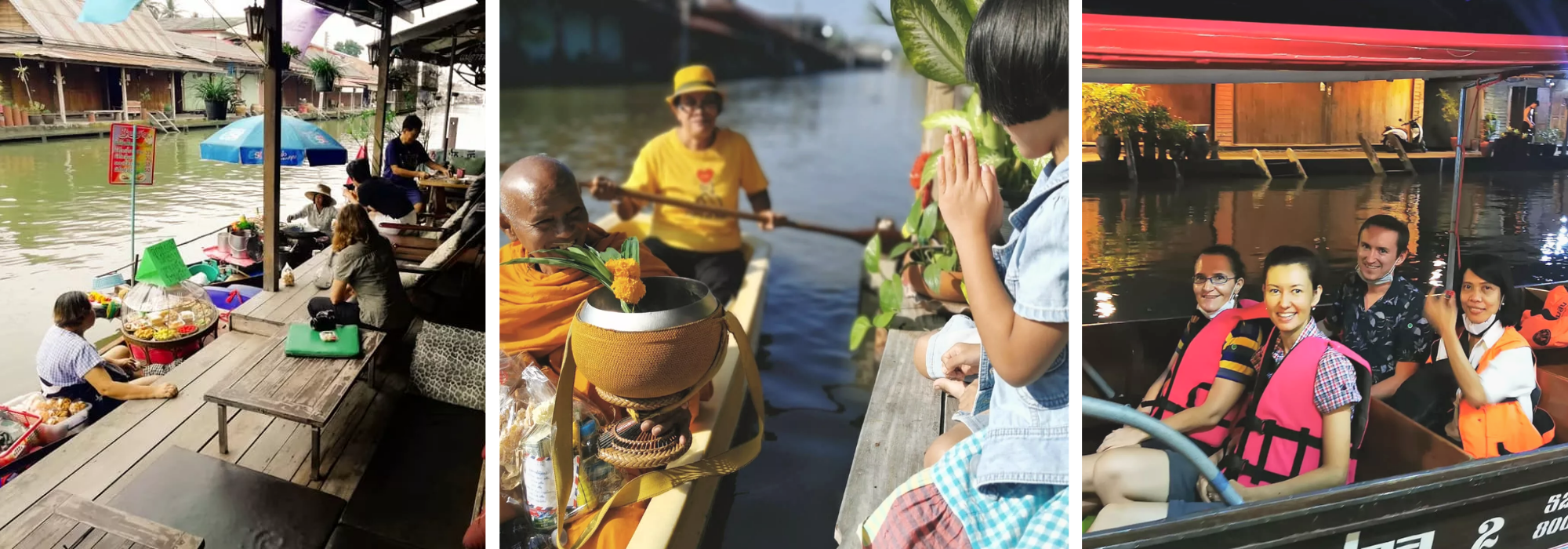 Neben dem schwimmenden Markt punktet Amphawa auch mit seiner malerischen Flusslandschaft, der entspannten Atmosphäre, der Möglichkeit Glühwürmchen vom Boot aus zu beobachten und einer ganz besonderen Tradition, der buddhistischen Almosenzeremonie am Boot. Dabei paddeln Mönche in ihren safranfarbenen Gewändern den Fluss entlang, während ihnen die Menschen am Wasserrand die Almosen reichen. Amphawa ist eine der wenigen Städte, die diese Tradition am Fluss bis heute aufrechterhält.