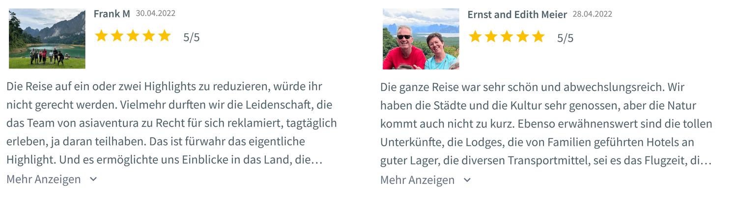 Asiaventura ist Teil des Reiseveranstalters Ventura TRAVEL GmbH, der für nachhaltige und authentische Reisen bekannt ist. Das Unternehmen verwaltet eine lokal ansässige Reiseabteilung, die sich auf Reisen abseits der ausgetretenen Pfade in Südostasien spezialisiert hat. Die Reisepläne basieren auf jahrelangem Wissen und den exklusiven Beziehungen, die das Unternehmen mit vertrauenswürdigen lokalen Experten pflegt. Alle Reisen von Asiaventura halten sich an Umwelt- und Sozialstandards, um sicherzustellen, dass die Reisenden einen positiven Einfluss auf die Reiseziele haben.